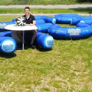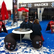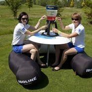 Der aus zwei Teilen bestehende Tisch und die aufblasbare Sitzbank sind problemlos in kürzester Zeit auf- bzw. abgebaut. Die Tisch-Sitzgelegenheit lässt sich ideal mit den aufblasbaren Zelten kombinieren.