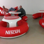 Die aufblasbare Sitzgelegenheit mit integriertem Tisch in ansprechendem Design bietet Platz für 4 - 6 Personen und kann auf den unterschiedlichsten Böden aufgestellt werden.