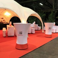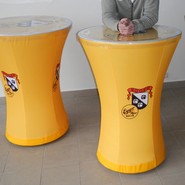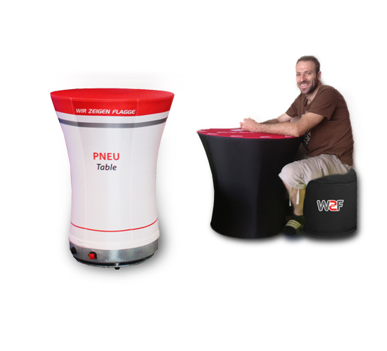 Der aufblasbare Bistrotisch kann sowohl Indoor als auch Outdoor ohne permanente Stromzufuhr eingesetzt werden. Mit wenigen Handgriffen ist der Tisch aufgeblasen bzw. aufgebaut.