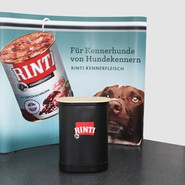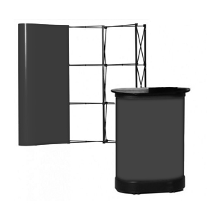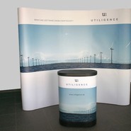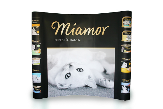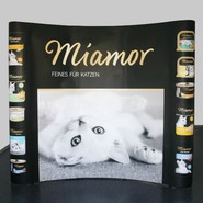 Die Systeme sind extrem stabil, formschön und aufgrund der Leichtbauweise einfach zu transportieren. Die einzelnen Druckbahnen lassen sich über Magnetstreifen leicht an den einzelnen Feldern der Faltkonstruktion anbringen. Dadurch kann das Bildmotiv einfach und kostengünstig durch ein anderes ausgetauscht werden. Im Lieferumfang sind neben dem Faltwandgestell inkl. Magnetschienen und Druckbahnen auch ein Hardcase-Transportkoffer und zwei Halogenstrahler enthalten. Der Transportkoffer kann als Präsentationstisch (Counter) verwendet werden.