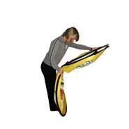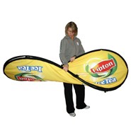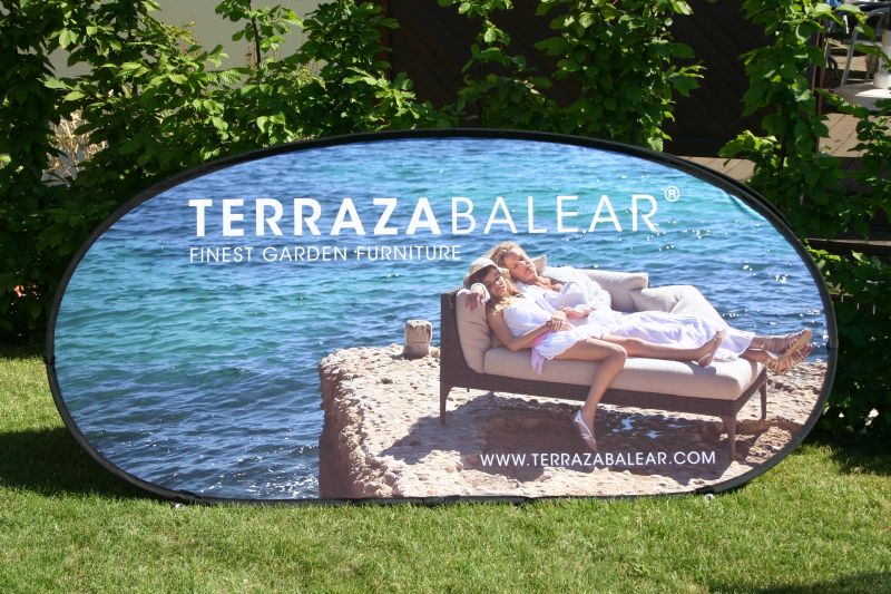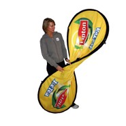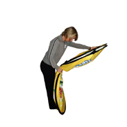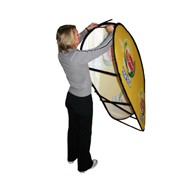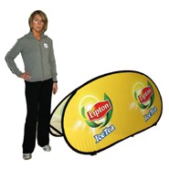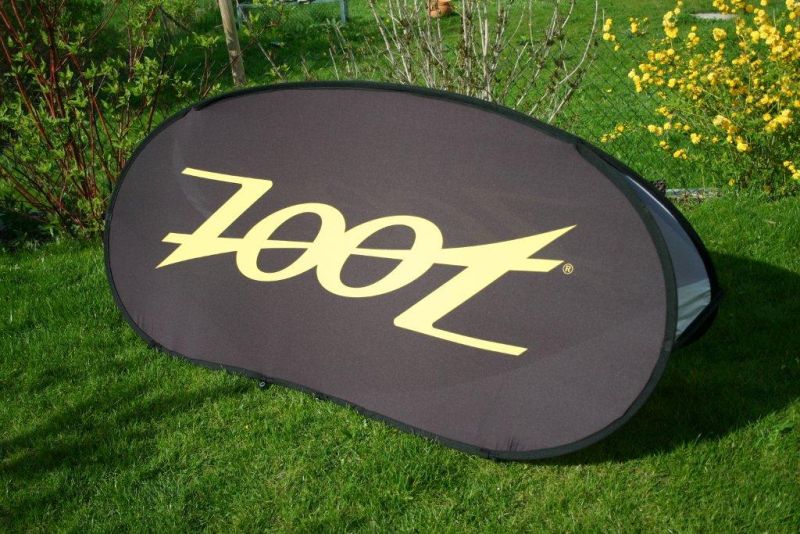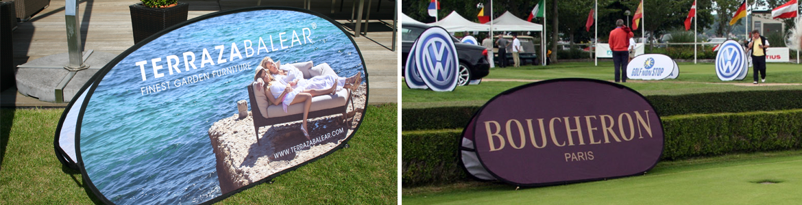 Eine zweiseitig bedruckte Werbebande in trendiger Form, die sich in Sekunden aufbauen und wieder zusammenfalten lässt. Das Tobblo lässt sich ideal u.a. bei Sportevents, Sponsorenpräsentationen und Messeveranstaltungen einsetzen, da es ohne Halterungen auskommt und selbststehend quasi an jedem Ort platziert werden kann.