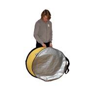 Die sofort einsatzbereite Werbebande wird inklusive Befestigungsmaterial (Zeltheringe) in einer komfortablen Schultertragetasche geliefert.
