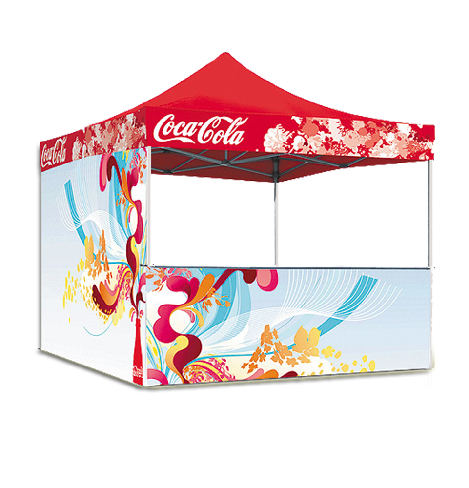 Die Faltzelte sind in den verschiedensten Standardfarben erhältlich, können aber auch passend – vom Dach bis zur Seitenwand - individuell personalisiert und damit einzigartig gestaltet werden.