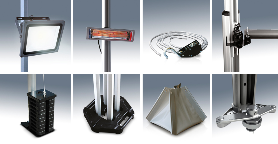 Durch eine große Auswahl an funktionalem Zubehör können Sie ihren Pavillon immer für den gegebenen Anlass individuell bestücken und durch Verbindungselemente einfach und schnell zu einer Zeltstadt erweitern.