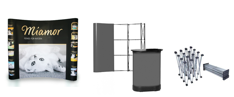 Alle Systeme werden in praktischen Transporttaschen oder Hard-Cases geliefert und können ohne Werkzeug und tiefgreifende Fachkenntnisse auf dem Gebiet des Messebaus, auf- und abgebaut werden.