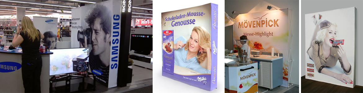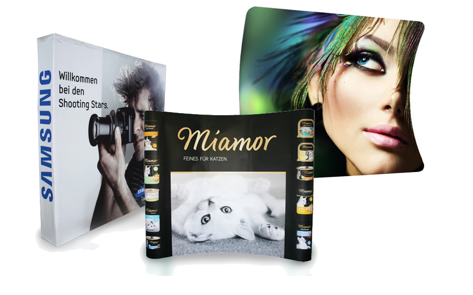 Unsere Stretch-Walls basieren auf einem innovativen Alu-Rohrstecksystem, welches nach dem Aufbau mit einer Textilbespannung überzogen wird.